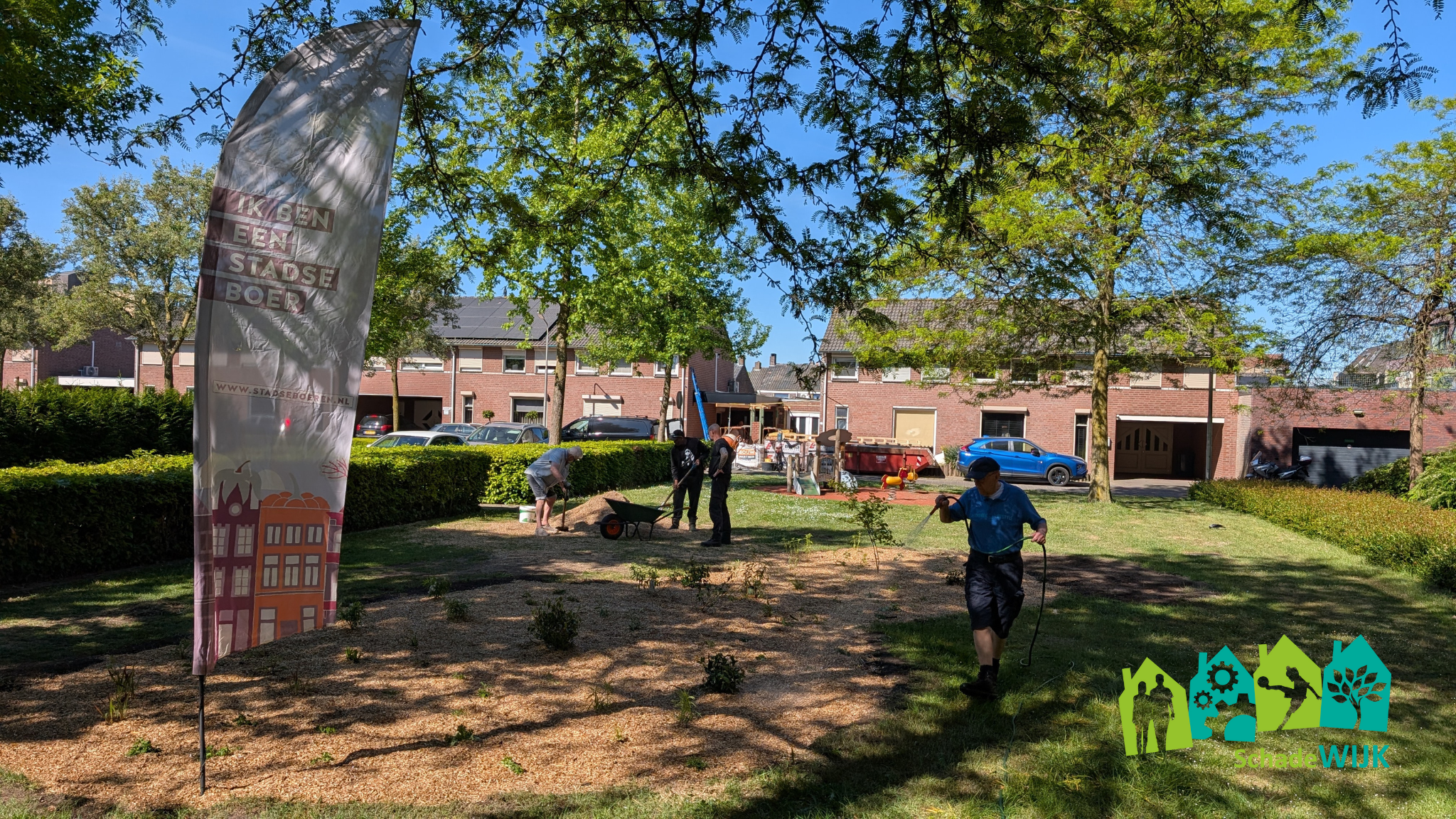 De Stadse Boeren gaven deskundig advies over het ontwerp, de beplanting en het onderhoud. “Vandaag zijn ze hier zelfs om te helpen planten,” vertelt Jeanne enthousiast. “Een prachtig moment.”