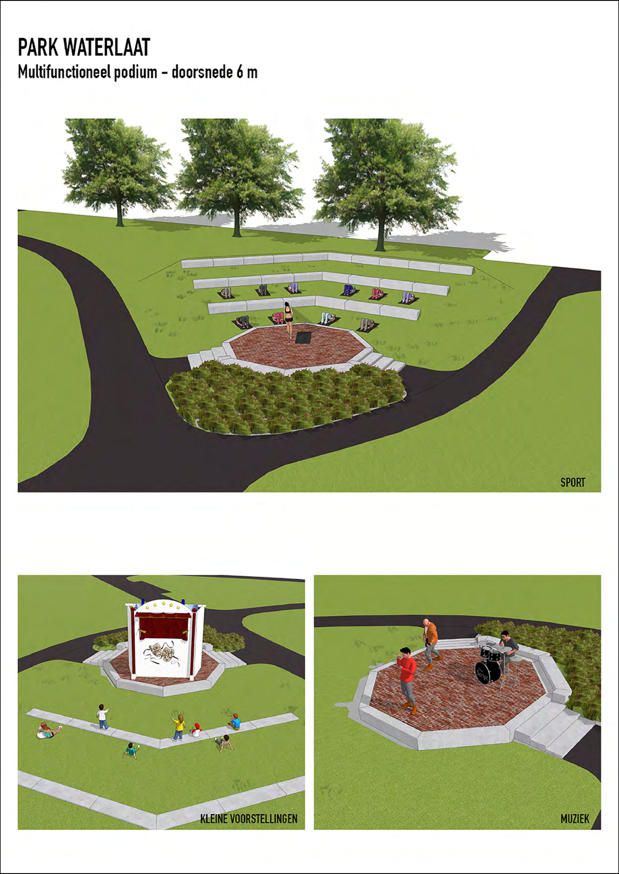 Op de laatste poster zie je een multifunctioneel podium. Wat vind jij hiervan? Zou het een meerwaarde kunnen zijn? En waar zou het dan voor gebruikt kunnen worden? Deel jouw ideeën met ons via de socials of per mail.